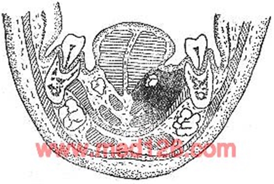舌下間隙感染易由下頜舌骨骨后緣借頜下腺體進入頜下間隙。一旦頜下膿腫形成,僅從口底引流則效果不好,應及時由頜下區(qū)作切開引流。